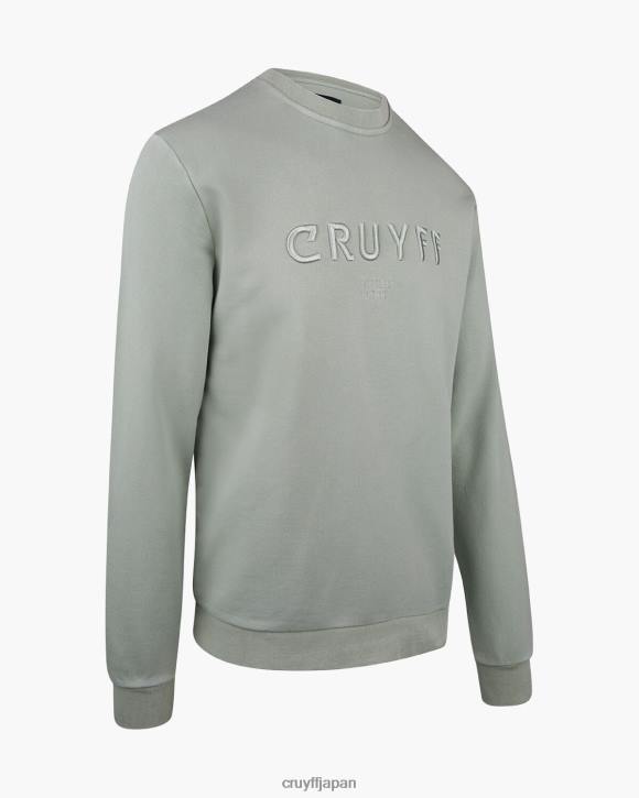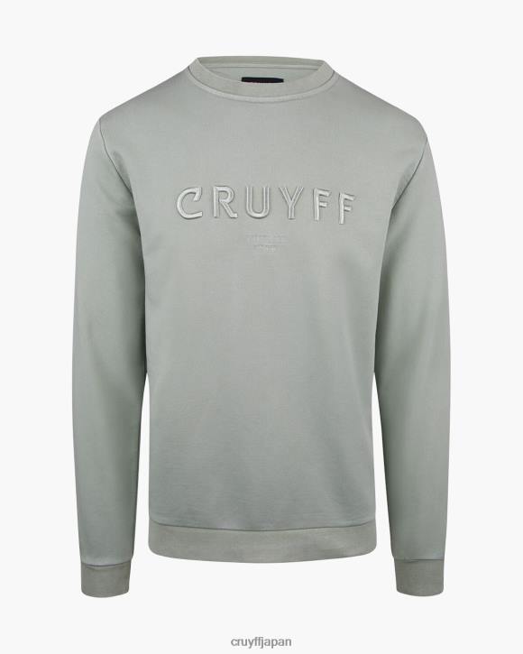 デザート セージのクライフ リカルド セーター。特大のクルーネックには泡が詰められ、酸洗浄が施されています。胸にクライフのブランド刺繍が施されています。