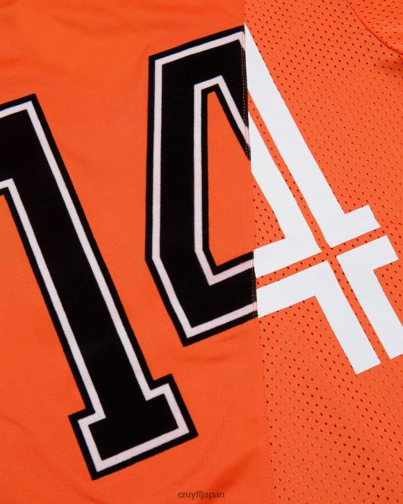 フロントの左胸に大きなライオンのロゴが入っています。背面には、象徴的な数字の 14 と「oranje ' Orakel」のテキストが描かれています。